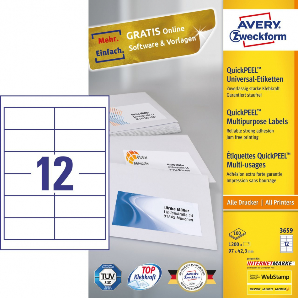 Fabricante:   AVERY    P/N:  3659    EAN:  4004182036594    Código:  454407