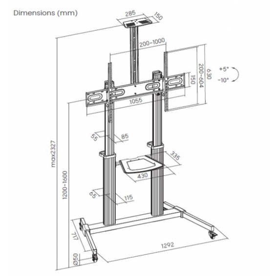 SOPORTE DE SUELO CON RUEDAS EQUIP PARA PANTALLAS DE 60-100" COLOR PLATA Max.VESA 1000x400
