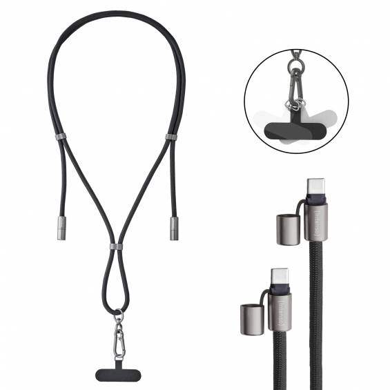 Cell Phone Charging Lanyard, negro