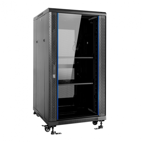 Aiten Data AI6822 Armario de Suelo 22U - Ancho 600 - Fondo 800 - Con Accesorios - Ruedas con Freno - Color Negro