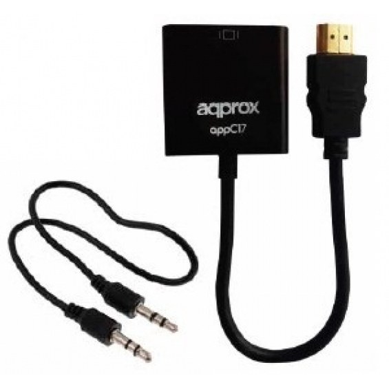 ADAPTADOR VIDEO HDMI(M) A VGA(H)+AUDIO APROX INCLUYE CABLE MINI JACK 3.5MM / cioGRO APPC17