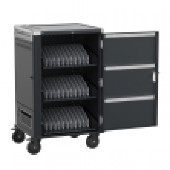 El carro de carga EW1701 le permite proteger, almacenar y cargar fácilmente hasta 36 dispositivos Tablets, Chromebook o portátiles con pantallas de hasta 15.6". Cuenta con un sistema de carga inteligente, estantes con ranuras para dispositivos flexibles y duraderas, un sistema de administración de cables/fuente de alimentación y, lo mejor de todo, está completamente ensamblado para una implementación rápida. Además, cuenta con espacios numerados para dispositivos y sus correspondientes espacios para suministro de energía para optimizar la organización. El carro también cuenta con puertas ventiladas con un mecanismo de bloqueo con llave de 3 puntos y la opción de agregar su propio candado para mayor seguridad.