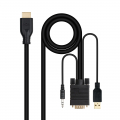 Conversor unidireccional VGA/M + AUDIO/M + USB-A/M (para alimentación) a HDMI/M, Negro, 1.8m