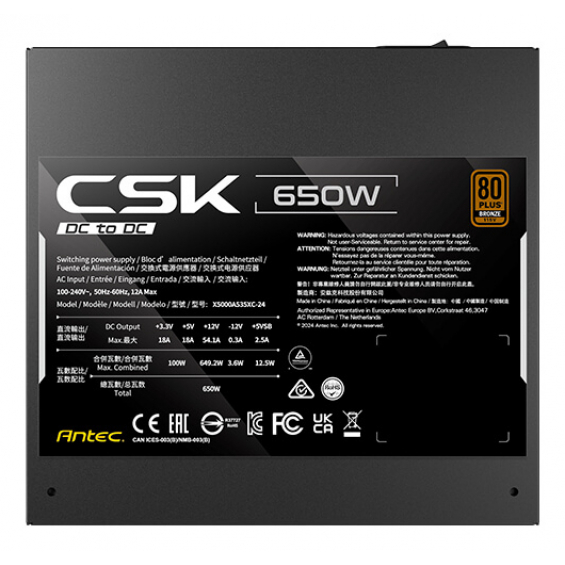 CSK650DC EC unidad de fuente de alimentación 650 W 20+4 pin ATX ATX Negro