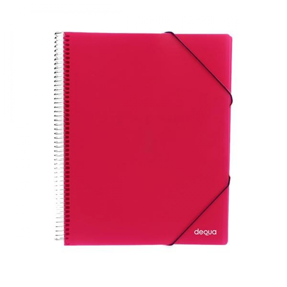 Carpeta de fundas espiral tama?o A4 fabricada en polipropileno rigido color fucsia translucido. Contiene 20 fundas de 60 micras transparentes soldadas al lomo.