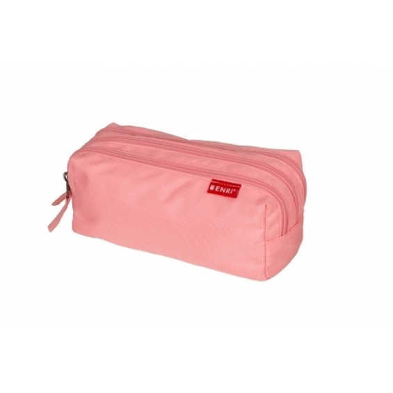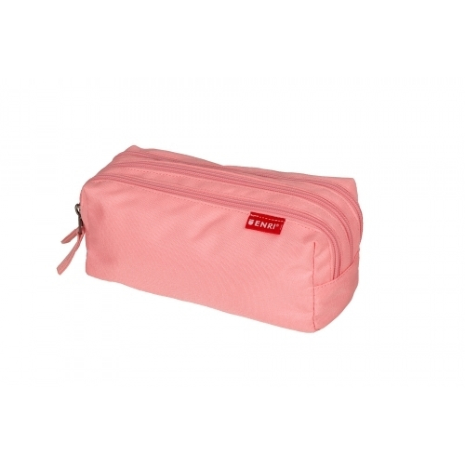 Enri Estuche Portatodo con 3 Compartimentos - Cierres de Cremallera - Fabricado en Poliester - Color Rosa