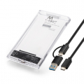 Ewent EW7064. Tipo de producto: Caja externa para unidad de estado sólido (SSD). Número de unidades de almacenamiento compatibles: 1, Tamaño de la unidad de almacenamiento: 2.5", Interfaces de disco de almacenamiento soportados: eSATA. Velocidad de transferencia de datos: 5 Gbit/s. Color del producto: Transparente