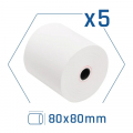 - Pack de 5 unidades - Rollo de papel térmico 80 x 80 x 13 mm - Ancho papel: 80 mm - Diámetro exterior rollo: 80 mm - Diámetro agujero interior: 13 mm - Gramaje: 65 g / m2 - No contiene BPA (Bisfenol A) - Certificado RoHS