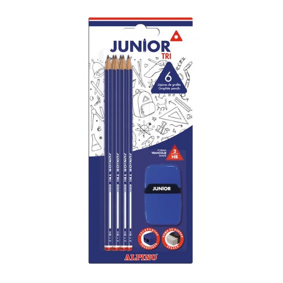 Blister 6 lápices de grafito Junior Tri + goma + duo sacapuntas