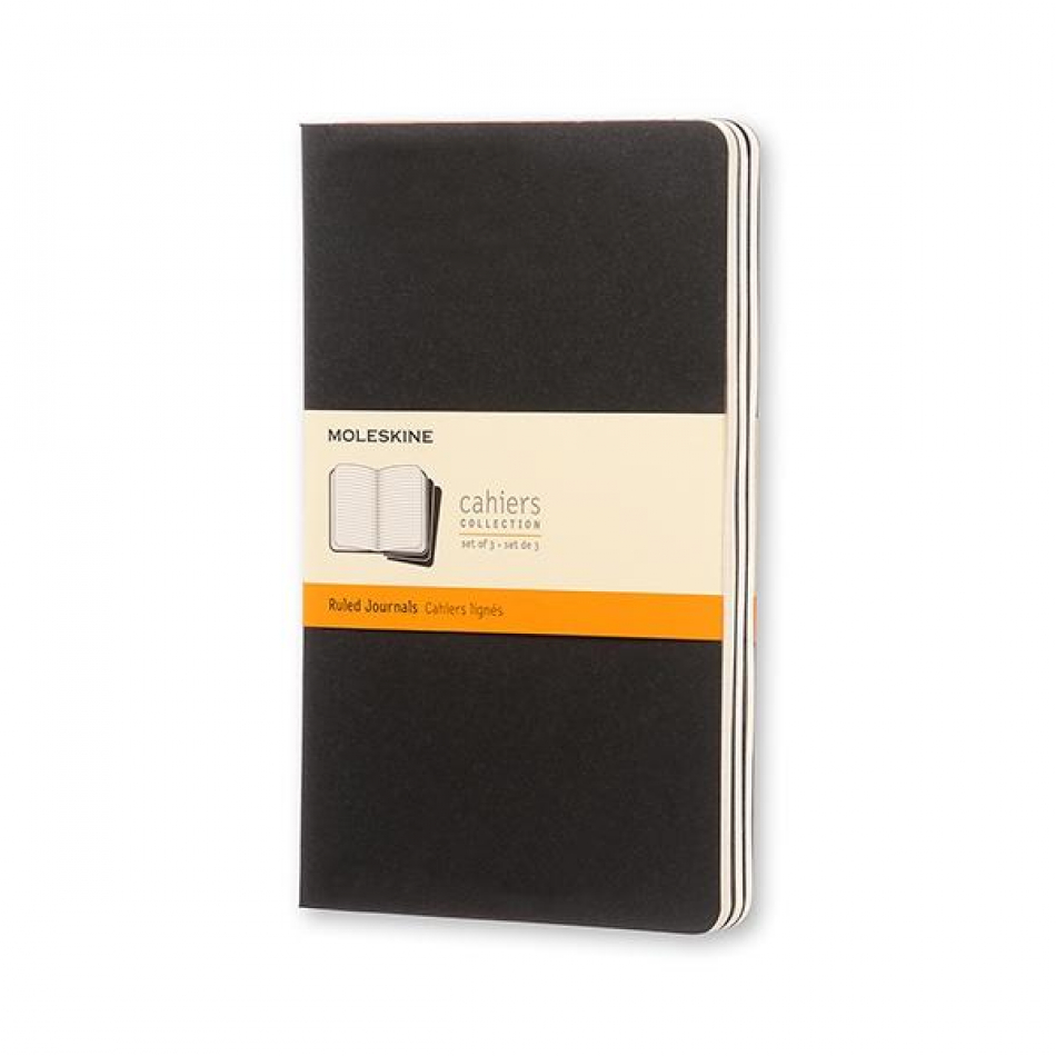 LIBRETAS CON CUBIERTA DE CARTULINA FLEXIBLE COLOR NEGRO, ENCUADERNACII¿½N COSIDA Y PUNTAS REDONDEADAS. SOLAPA INTERIOR CON ESPACIO PARA GUARDAR NOTAS SUELTAS. PAPEL INTERIOR DE COLOR MARFIL Y RAYADO HORIZONTAL, DE 70G Y SIN CLORO. LAS I¿½LTIMAS 16 HOJAS SON DESPRENDIBLES. SET DE 3 CUADERNOS. LARGE: MEDIDAS 13X21 CM, 80 PI¿½GINAS.