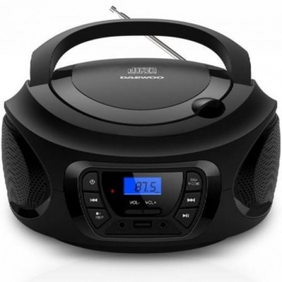 Daewoo DW3011 es una radio CD/FM tipo boombox con Bluetooth, USB, AUX y salida de auriculares, que integra 2×2 W en altavoces estéreo, ecualizador de 5 modos y pantalla LCD. Funciona a corriente AC o con 4 pilas C (LR14) para uso portátil.