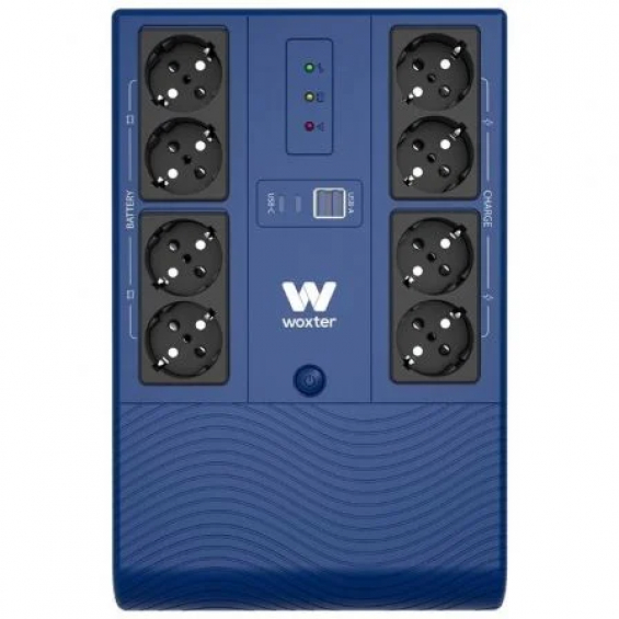 SAI Woxter Multibase 1200VA con batería de 12V/7Ah, 8 tomas Schuko y protección contra cortes de suministro. Ideal para PCs y equipos críticos.