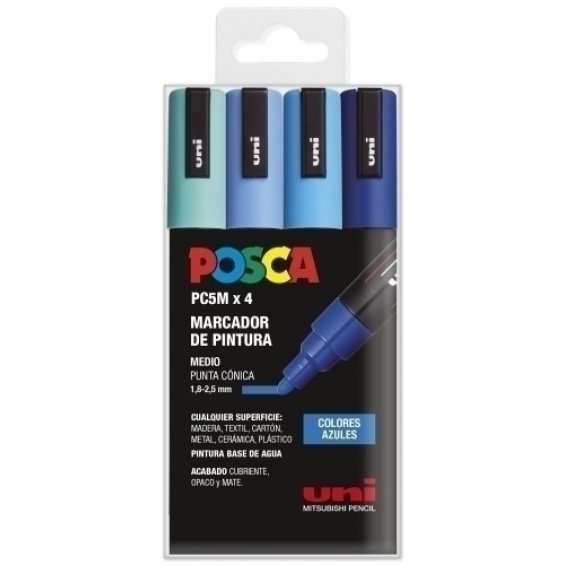 UNIBALL MARCADOR POSCA PC-5M/4C NO PERMANENTE 1.8MM-2.5MM COLORES SURTIDOS AZULES -ESTUCHE 4U-