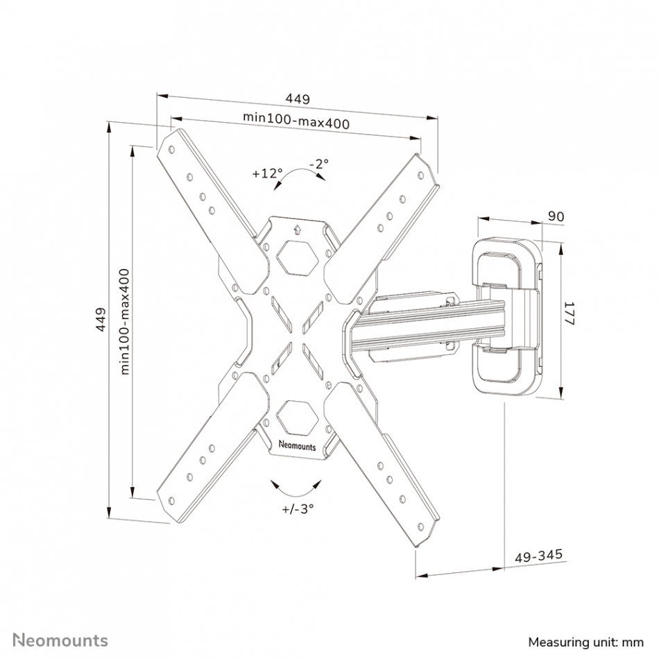 Neomounts LEVEL-850 WL40S-840BL14 Soporte de pared con movimiento completo para TV - 32-65" - máx 40 kg - VESA 100x100-400x400 - prof. 4,9-45,5 cm - ajuste del nivel - Modelo de Instalación Rápida incl. plantilla de fijación - negro